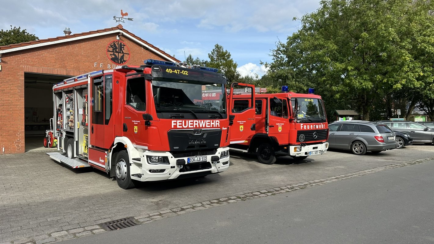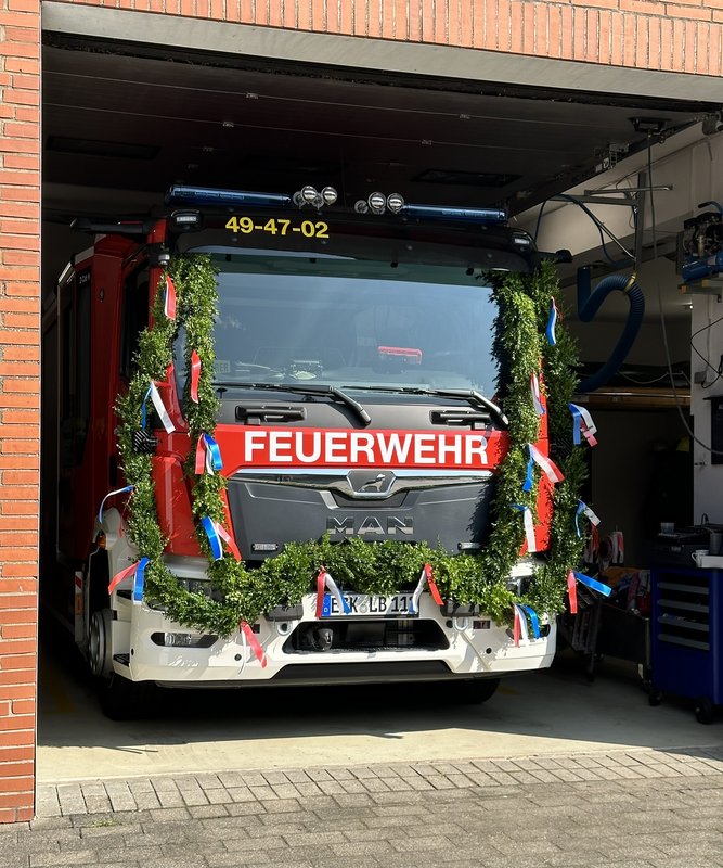 Der emotionalste Moment des Abends fand gegen 17:30 Uhr statt: Zu den Klängen von „Time to say goodbye“ trat das 1997 gebaute alte Löschfahrzeug vom Typ „LF 8/6“ seine letzte Fahrt an. Nach 27 Dienstjahren und zahlreichen Einsätzen wurde der alte Mercedes-LKW feierlich verabschiedet. Er wird durch ein modernes Löschfahrzeug vom Typ „LF 10“ ersetzt, das auf einem MAN-Fahrgestell basiert und mit einem 15-Tonnen-Fahrgestell, 295 PS und einem automatisierten Getriebe ausgestattet ist. Das neue Fahrzeug verfügt über einen 2.000 Liter fassenden Wassertank sowie 120 Liter Schaummittel. Besonders hervorzuheben sind die modernen Kameraspiegel, die dem Fahrer zu jeder Tages- und Nachtzeit einen optimalen Überblick ermöglichen, sowie die großzügige Umfeldbeleuchtung und der leistungsstarke Lichtmast mit 47.000 Lumen.