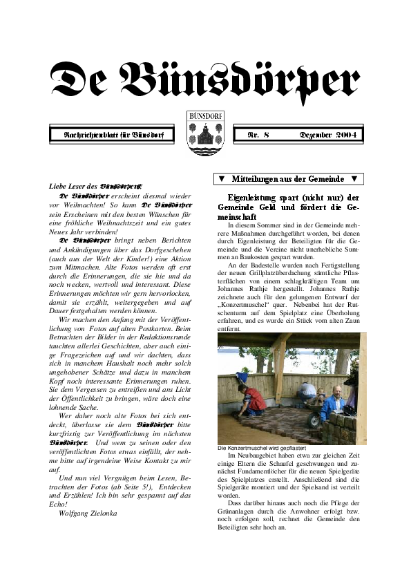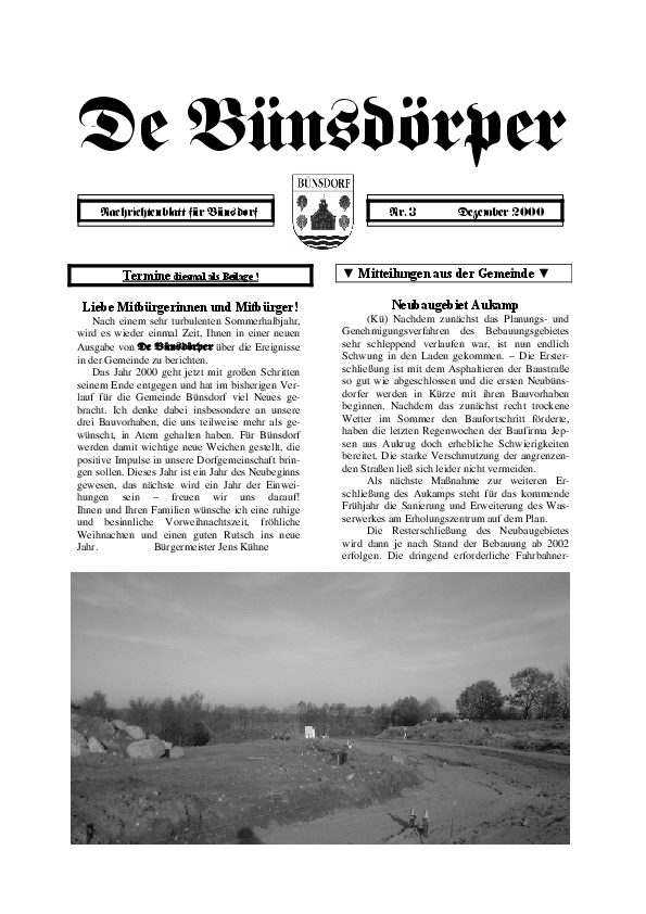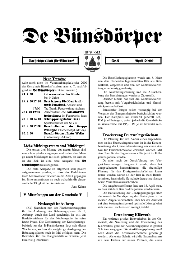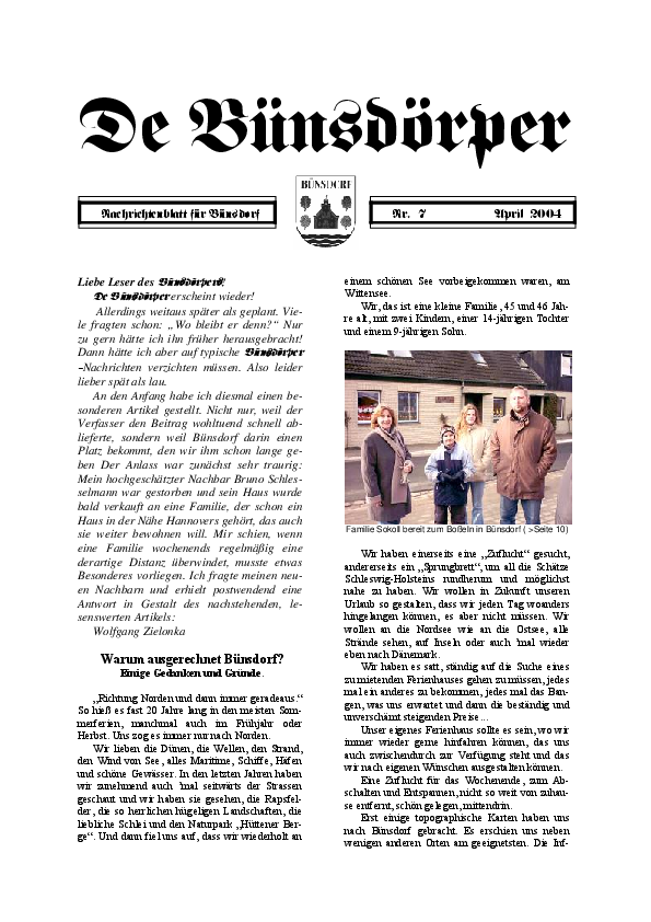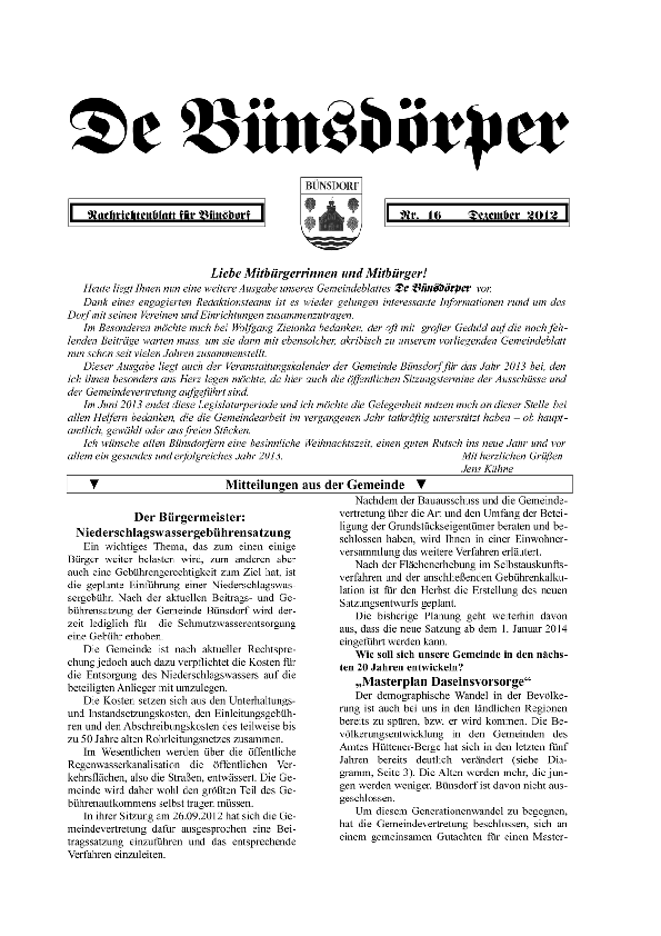 Liebe Leser des Bünsdörpers! De Bünsdörper erscheint wieder!