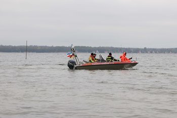 Nach den offiziellen Ansprachen erfolgte die Taufe des Rettungsbootes durch Carsten Zarp von der Förde Sparkasse, welche das Projekt mit einem Betrag von 3.000 Euro unterstützt hat und damit ebenfalls einen großen Beitrag leisten konnte. „Bei der Anschaffung des Bootes handele es sich um eine freiwillige und nicht um eine hoheitliche Maßnahme der Gemeinde“, so Zarp. „Daher haben wir auch gerne unterstützt und hoffen, dass damit die Rettung von Leben auf dem Wittensee verbessert werden kann.“ Das Boot taufte er unter den Augen von 300 Gästen zu den Klängen von „Anker gelichtet“ auf den Namen „Hein“ in Gedenken an Hein Bock, ebenfalls ein Befürworter des Projektes und mit seinem Ableben verfügte, dass anstelle von Blumenspenden lieber für das Rettungsboot gespendet werden möge.